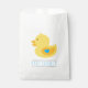 É um menino! Você está planejando um banho de bolha ou um chá de fraldas temático de pato? O Chá de fraldas Favor do Borracha Ducky Bag é uma escolha adorável para chás de fraldas para rapazes. Apresenta um doce patinho amarelo com um coração azul na asa. Estas bolsas favoritas ajudarão a adicionar esse toque especial aos seus favoritos para festas. Não se esqueça de juntar o tema da festa com a coordenação de produtos projetados pela Enchantfancy Design Company.