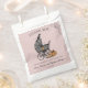 Saco de Chá de fraldas personalizado "Obrigado" Halloween/Fall, com carruagem de bebê desenhada à mão, corvo e abóboras contra fundo rosa-pincelado. Basta clicar em "Personalizar este modelo" para inserir sua própria mensagem de agradecimento, Nome e Data do evento.