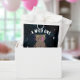 Criaturas cósmicas de bebês tema de chá de fraldas de floresta apresentando uma ilustração de um filhote de ursos rodeado de estrelas. O urso tem um raio rosa na face e estrelas na cabeça. Personalize o texto. O fundo é o design de inspiração cósmica de cor aquosa.