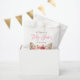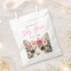 Chá de fraldas bonito, com o tema do gato, favorece bolsas com um roteiro branco, rosa, e um gato pintado com aquarelas, com flores cor-de-rosa e mauve, perto do fundo do design. Personalize o chá de fraldas matemático favorece as bolsas com o nome da futura mãe e a data do chá de fraldas.