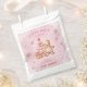 Um docinho está a caminho! Chá de fraldas de Natal favorece bolsas com uma adorável garota de pão de gengibre, árvore de Natal, flocos de neve e presente, todos de rosa e bege. Personalize facilmente todo o texto. - Kate Eden Art