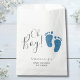 O Chá de fraldas Favor Bag deste menino bonitinho é decorado com os pés de bebê brilhantes azuis e as palavras, Oh Boy! Facilmente personalizável.