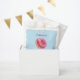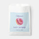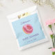 Saco de favorecimento do Chá de fraldas azul-claro com uma rosquinha rosa na cor d'água. É muito fácil personalizar, com seus detalhes pessoais.