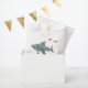 Este chá de fraldas de favores de designs bonitinho e moderno dos meninos apresenta um desenho de tubarão azul, com peixes, bolhas, algas, ondas e areia, e pode ser personalizado com os nomes dos pais e a data do seu partido. O adorável e adorável acúmulo com o oceano ao chá de fraldas de coelhos casais.