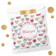 Um pastel moderno toma porcelana de porcelana ou xícaras de chá de porcelana bonito. Excelente coordenação favorece as bolsas com texto personalizado para combinar a celebração do chá de fraldas. Arte original de Nic Squirrell.