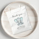Um obrigado bonito e neutro para o gênero, você é a favor das bolsas para seu chá de fraldas com "obrigado você" escrito em um roteiro de cinza macia com sujeira e uma cor verde-d-água pastel de um elefante para bebês. Personalize o nome da futura mãe e a data do chá em uma simples tipografia de cinza.