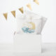 Lua de ouro celestial, elegante e elegante, e estrelas com um bebê chá doce adormecido azul adormecido, doces a favor de bolsas.