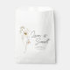 Saco de lembrança moderno e boêmio com "O Amor é Doce" e delicadas flores silvestres em tons suaves de rosa, amarelo, roxo, marfim e verde. Personalize com os detalhes do seu chá de noiva com o modelo fácil de editar, apresentando uma fonte de letra romântica e uma fonte serifada moderna.