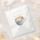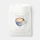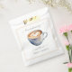 Saca de lembrança de chá de panela com tema de café adorável. A xícara de café tem um coração de espuma dentro! A caligrafia de texto incrível adiciona ao visual. Um design maravilhoso para o seu chá de panela de café. Veja itens coordenados em nossa loja, Enchanted Finch.