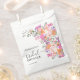 Flores silvestres românticas pastéis, primavera de verão, saco de bridal com flores bonito selvagens em cor-de-rosa, pêssego, roxo, lavanda, folhas verdes e muito mais, com uma tipografia com escrita escovada sobre um fundo rosa pastel macio elegante e editável.
