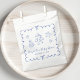 Bolsas bonitas de favores para o seu chá infantil com um quadro francês azul ondulado adornado com arcos coquetes, ilustrações brancas desenhadas à mão de corações, estrelas, bolo e decoração de berçário, e o nome da mãe a ser mostrada em um divertido e lúdico roteiro azul.