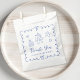 Bolsas bonitas e esquisitas de favores para o seu chá infantil apresentando um quadro francês azul ondulado adornado com arcos, ilustrações brancas desenhadas à mão de corações, estrelas, bolo e decoração de berçário, e "Obrigado" mostrados em um divertido e divertido roteiro azul.