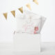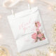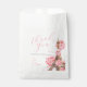 Sacas de lembrancinhas do Chá de Noiva Paris com caligrafia e design floral rosa da Torre Eiffel.