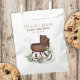 Este design apresenta um doce elegante favorece o saco de favores do chá de fraldas do chá de fraldas, com um simples modelo de caligrafia minimalista, uma carruagem tradicional de vintage, uma folha verde de eucalipto foliar, folha verde-folha botânica mínima, embalagem de chá de fraldas, material de festa de chá de fraldas personalizado, simples roteiro de na moda, favores de chá de fraldas personalizados, biscoitos bar sobremesas de tratamento