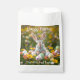 Um belo coelho da Páscoa personalizou a bolsa de favores para a sua festa ou celebração de Páscoas. Coelhinho bonito sentado no capim de cheios de flores e Ovos de Páscoa.
