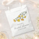 Essas bolsas de favores de chá de noiva com flores amarelas são adoráveis e vão surpreender seus convidados. Elas apresentam um padrão floral contemporâneo em aquarela com flores de botão-de-ouro amarelas brilhantes. Essas bolsas de favores personalizadas são elegantes, ecológicas e fashion, tornando-as ideais para personalizar sua festa de noivado. Simples, porém elegantes, elas combinam bem com qualquer decoração de chá de noiva com tema de verão.
