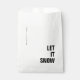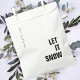 Férias simples, na moda, "Deixe-a nevar" favorecem bolsas em preto e branco monocromático com uma tipografia moderna de blocos minimalistas em preto que podem ser facilmente personalizados com a sua própria saudação, nome de família e ano para esta tenda época festiva! #letitsnow #minimalista #favorbags #natristmas
