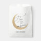 Design apresenta a lua dourada falsa com "Duas a Lua" em um texto caligrafico fofo. Personalize com suas informações ou clique em "Clique para personalizar mais" para editar estilos de fonte, tamanho e cores.