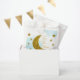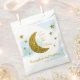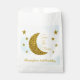 Duas da lua! segundo aniversário com lua dourada e estrelas com fundo de cor azul