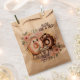 anthropomorphic donuts as a loving couple, with one donut wearing a delicate white veil and the other sporting a tiny black bow tie. The donuts are sitting close together at a small café table, each holding miniature coffee cups with steam gently rising, their glazed surfaces painted in soft pastel pink and chocolate brown tones. Delicate watercolor florals in blush pink and ivory surround the couple, with subtle heart-shaped sprinkles scattered around them. The background features a dreamy wash of pale lavender and cream watercolor textures, creating a romantic wedding atmosphere perfect for favor bags.
