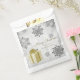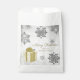 O presente de pacote favorece este feriado com um Dourado prêmio de presente de Natal Bag. O design de bolsa de favores apresenta um presente de Natal embrulhado vibrante, enfeitado com cinzas e flocos de neve brancos contra um fundo de nuvens de cinza. Itens adicionais de presentes e feriados disponíveis com este design também.