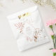 Arranjos delicados, folhagem com pequenos sotaques florais em tons suaves e sonhosos de creme, esticados e rosa com salpicos de brilho, e layouts únicos de design, fazem disso uma coleção excitante, especialmente para casamentos de primavera. A bolsa de favores do casamento mostrada aqui mostra uma folhagem exuberante em volta de um quadro de ouro rosa, em forma de diamante. Adicione sua mensagem pessoal, nomes e data de casamento usando o modelo fornecido. Veja o link de coleção nesta página para ver todos os itens correspondentes neste belo design ou ID817 de pesquisa para ver outras peças e opções de cor para este conjunto.
