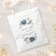 Saco de favoritismo floral azul-poeirento com buquê elegante de azul-marinho, azul-real, branco, ouro, marfim de champanhe, rosa de cor-de-rosa, botões de flor ranúnculo e folhas de eucalipto verde-sábio e buquê de aquarela elegante. Entre em contato comigo para obter ajuda sobre a personalização ou se você precisar de outro produto com este design.