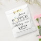 Ele pediu a mão sacolas de favor para seus favores de pipoca em sua festa de noivado ou chá de noiva você pode personalizar escrevendo o nome do noivo e o nome da noiva para um toque mais personalizado. O O em Pediu é substituído por um anel de noivado de diamante.
