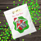 Esta bolsa de favores da festa tem um esqueleto engraçado segurando enfeites de árvore de Natal até seus olhos vestindo um dentro de chapéu de Papai Noel vermelho um brilhante círculo vermelho e verde ondulado. Personalize seu texto com o modelo.