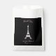 Esta design feminina e chica apresenta uma imagem branca da Torre Eiffel sobre um fundo preto. Sua mensagem aparece em uma elegante letra rosa em francês. Uma maneira fácil de adicionar o estilo de Paris à sua festa com estas bolsas a favor de na moda.