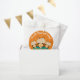 Diga obrigado aos participantes de seus primeiros aniversários com essas bolsas de favores exóticas e caprichosas, que apresentam alpacas bonitinhos / lhamas / guanacos / vicunas cavalgando caveiras e serapes coloridas ao estilo sul-americano em um fundo laranja estrelado e queimado! Design © W.H. Sim. Mais informações em zazzle.com/expressionsoccasions