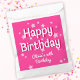Estas bolsas de aniversário inspiradas retroativamente apresentam um fundo rosa brilhante com estrelas cor-de-rosa e tipografia inspirada retroativamente. O olhar é divertido, feminino e feliz!