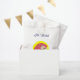 O papagaio Feliz Navidad, com uma arara colorida sobre fundo amarelo. Com uma risca azul, você pode adicionar sua própria mensagem. Excelente por desejar aos seus convidados um Feliz Natal em espanhol.