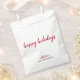 Os natais simples, na moda, "Felizes Feriados" favorecem bolsas em uma tipografia moderna e vermelha profunda e "com amor" complementar no estilo correspondente. Seu nome pode ser facilmente personalizado para um presente único com um toque pessoal! #favorbags #feriados