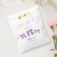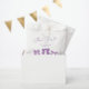 O tema do arco em branco é a festa de aniversário de um saco com ilustração desenhada à mão de fitas roxas.