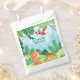 Festa de aniversário do Dinossauro Personalizado favorece bolsas. Celebre o seu aniversário de bebê com este bonito e colorido tema de dinossauro que o Dino Party fornece! Esta bela design de aniversário apresenta dinossauros coloridos bonitos com detalhes de sua festa personalizada em tipografia moderna e um fundo verde. Personalize os convites de primeira festa de aniversário adicionando o nome do seu filho e os detalhes da festa.
