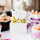 Chá de fraldas bonito com o saco de promoção de papel detalhado de abelha. Uma adorável família de abelhas de três. produtos para bebês de Ricaso. Detalhado com abelhões, flores e mel.