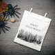 Mala de favores do Halloween, com uma floresta gótica e design de tipografia. Com letras personalizáveis em preto e branco, você pode adicionar suas próprias informações. Excelente para adicionar um toque assustador ao seu Feriado ou festa de fantasia.