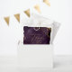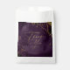 Um fundo de aquarela em tons de roxo de ameixa é tocado por um abstrato de linhas de ouro finas e efeitos de iluminação reluzentes para criar as peças desta bela suíte de casamento. A bolsa de favoritos do casamento mostrada aqui também apresenta caligrafia 'Obrigado' e uma mensagem pessoal junto com os nomes da noiva e do noivo e a data do casamento. Procure ID867 para ver outras peças e opções de cores para este conjunto.