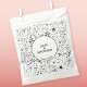 Desenhos modernos monocromáticos de preto e branco. Excelente coordenação favorece as bolsas com texto personalizado para coincidir com a sua celebração.