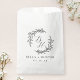 Bolsas de casamento personalizadas que apresentam caligrafia moderna com design de coroa floral estilo desenhado à mão.
