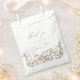 Bolsa de favelados de flores silvestres que apresenta gráficos florais bonito em tons de azul suave, pincel, amarelo, branco e verde e uma fonte moderna. O design é perfeito para um casamento ou evento de primavera ou verão. Par com qualquer coisa na coleção ELODIE para um olhar coeso.