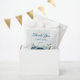 Lindo saco de favor romântico com flores azuis navais e azul claro empoeirado e algumas folhas bonitas .