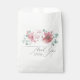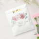Sacos de favores de flores rosa empoeirado com tipografia elegante para qualquer festa.