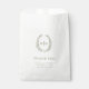Design verde de folha de coroa oval em verde branco em favor de bolsas. Adicione suas iniciais, nome e data de casamento em seu próprio casal monograma nesta bolsa de favor monotone elegante. Leituras Obrigado. Outras cores e itens de casamento correspondentes disponíveis. © Desenho original em folha e design por Sarah Trett para www.mylittleedenweddings.com no Zazzle.