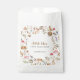 Sweet watercolor woodland baby shower favor bag featuring adorable forest animals—bunnies, hedgehogs, squirrels, deer, bears, birds—in a charming wreath with mushrooms, berries, florals, leaves, and soft foliage on white background. Gold text reads "A Little Token from the Forest – Thank You!" for heartfelt gratitude. This enchanting gender-neutral design adds whimsical nature charm to treats! Perfect for Boho forest-themed parties or woodland nurseries—high-quality, customizable paper bags to delight guests and complete your baby shower suite!