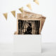 Garota Gótica Spooky no Vestido Negro e bolsa de presente do Festa de Halloween.