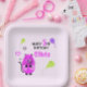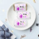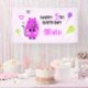 Gato lilás de cor-de-rosa com coração e balões para festa de aniversário