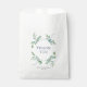 Bolsas verdes dizem obrigado para os convidados no estilo elegante. Minhas bolsas apresentam uma coroa de folhas botânicas verdes em tons de verde esmagadores, moldando sua mensagem personalizada. Personalize com seus nomes e data de casamento embaixo da cinza contemporânea. Projetado para coordenar com o Greenery Suite. Especialmente projetado para combinar o VG Invites Greenery Suite. Para mais informações, visite www.zazzle.com/vginvites