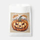 Digitales Design von einem großen Kürbis. Diese Kombination aus Kürbis, Grimasse und Halloween-Banner ist eine beliebte Dekoration während der Herbst- und Halloween-Zeit. Ein klassisches Symbol für die gruselige Jahreszeit.
